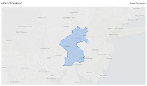 484 area code zip code