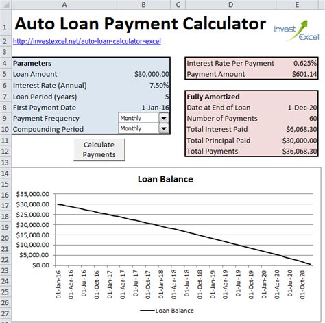 auto loan payment calculator excel