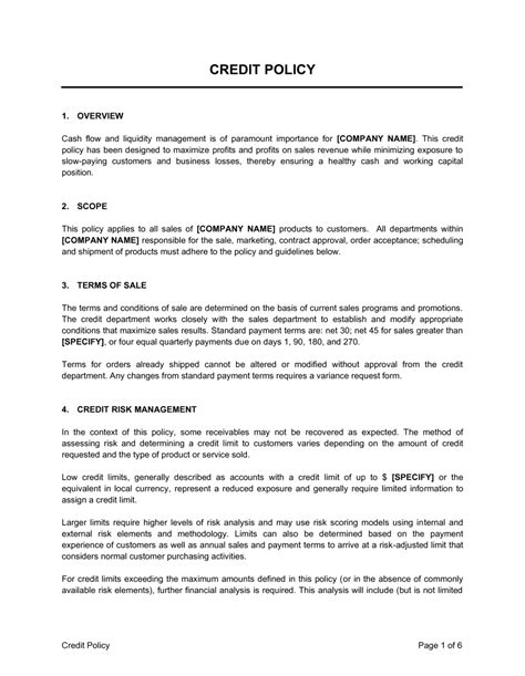credit control policy template
