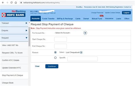 how to stop a cheque in hdfc