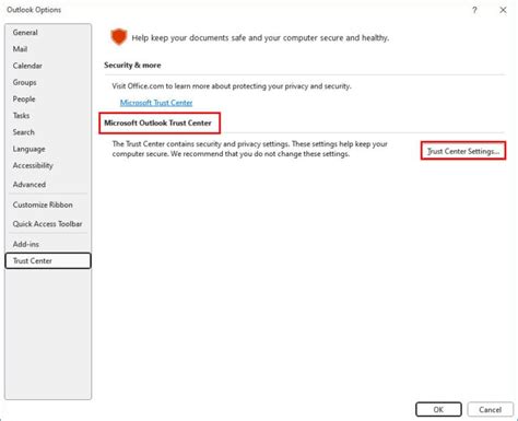 outlook email trust settings