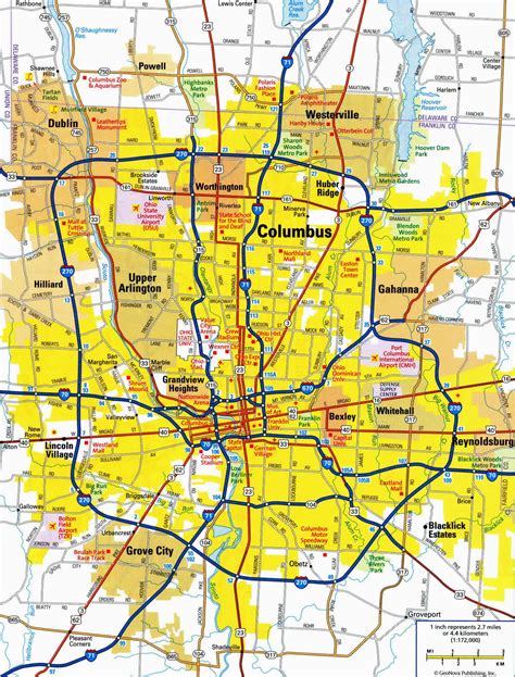 suburbs of columbus ohio map